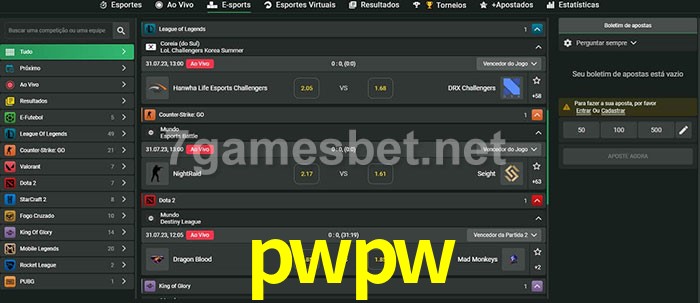 A aposta pwpw oferece aos jogadores a experiência mais conveniente de apostas em eSports!
